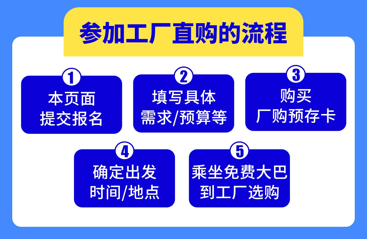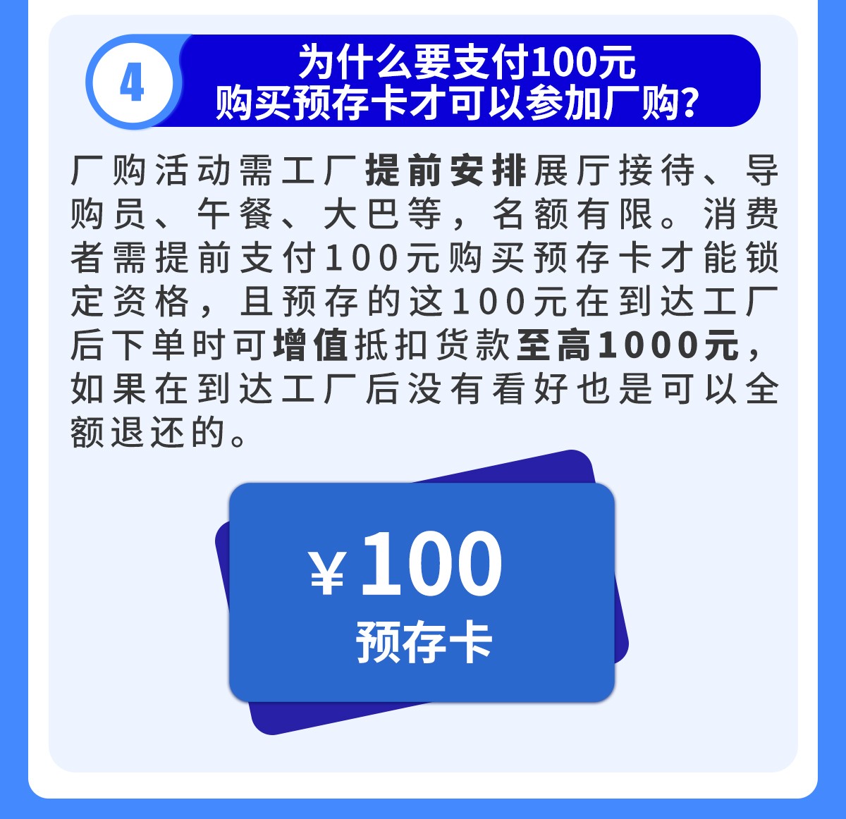 预存卡是参加厂购乘坐大巴及享受源头厂价的必要凭证,请在报名后在线购买此卡锁定名额。